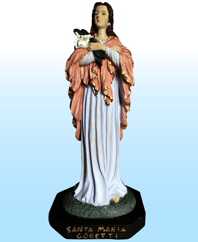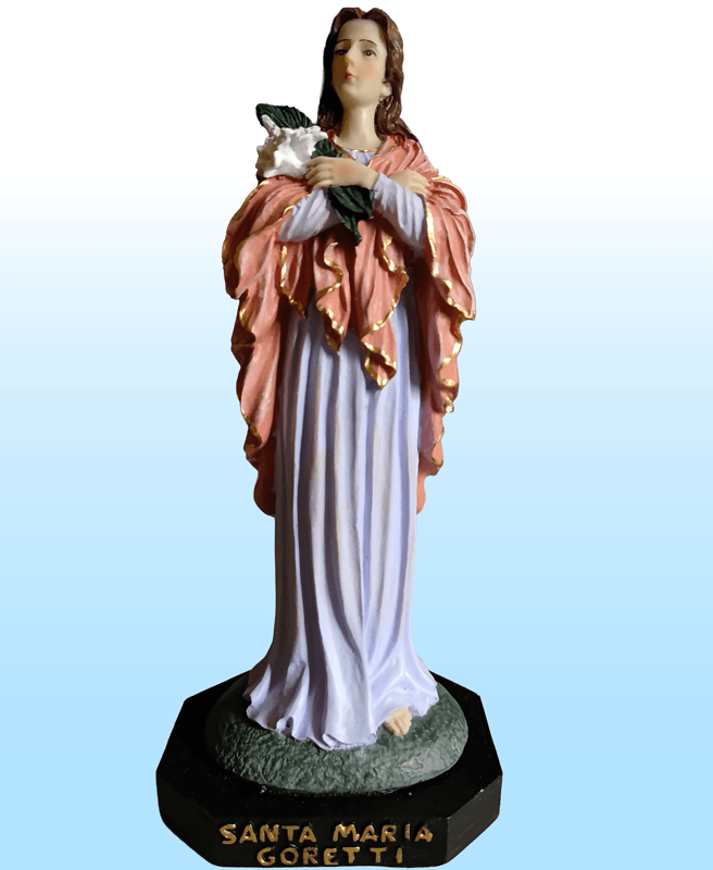 María nació el 16 de octubre de 1890, en Corinaldo, provincia de Ancona, Italia. Hija de Luigi Goretti y Assunta Carlini, tercera de siete hijos de una familia pobre de bienes terrenales pero rica en fe y virtudes, cultivadas por medio de la oración en común, rosario todos los días y los domingos Misa y sagrada Comunión. Al día siguiente de su nacimiento fue bautizada y consagrada a la Virgen. A los seis años recibirá el sacramento de la Confirmación.